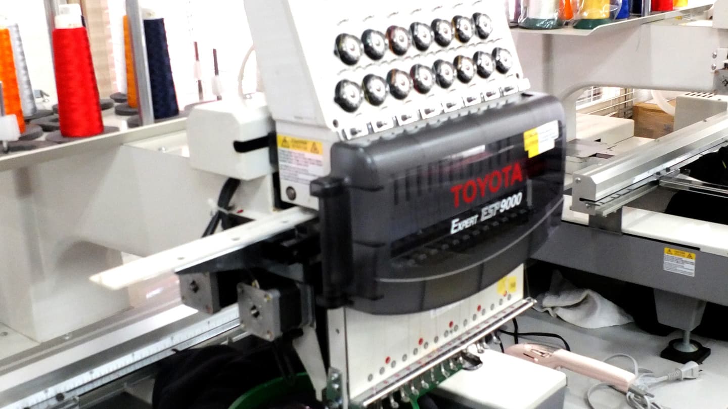 15色までのCP刺繍器になります。PCで作られた刺繍データに忠実に刺繍糸で、デザインを再現いたします。多種多様なアイテムに刺繍することが可能です。弊社強みは、元のデザインの制作から一環して、刺繍データまで制作することが可能であり妥協の無い製品を作り上げます。
