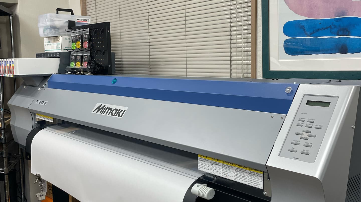 昇華インクを転写紙に出力いたします。昇華プリントは、ポリエステル地に熱転写すると科学反応で生地を染める事が出来ます。現在は化繊のプリント柄やゲームウェア、また横断幕、のぼり等の生地を染めに用いられています。